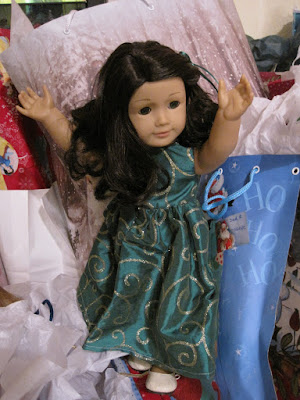 Once we got there, we rushed back to Mimi's doll room to say hi to Kailani and Piper. Ruthie and Janie had already gotten there, but were out taking a walk. Kailani and Piper were really excited to see us. They showed us their beautiful tree and their curio full of Christmas stuff. :)