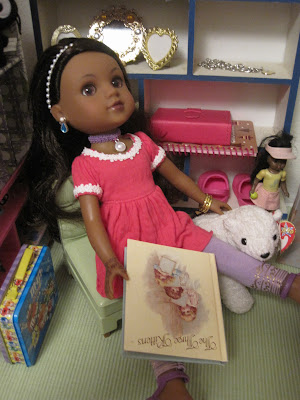 I think it's cool how similar our glasses are, don't you? Mama said that when she picked out her glasses, they reminded her of the Chocolate glasses from American Girl. Of course, when they're right next to each other, my glasses look more black than brown, but they do have their similarities. ;)